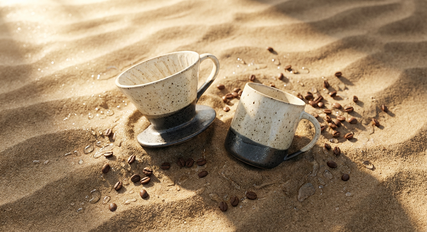 {A high-end editorial photo of a [PRODUCT] placed flat on a [TEXTURED SURFACE], captured from a direct top-down view. The surface is gently disturbed... Natural sunlight from the upper left... 3D realism, luxury product photography, shallow depth of field}