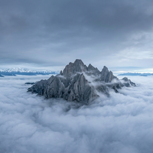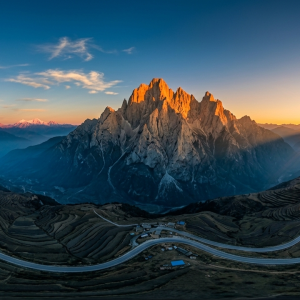 Ultra-high definition photograph in National Geographic style, masterful composition and light, capturing snow-capped mountains and forests with autumnal greens and golds reflected in a calm lake under a bright blue sky with clouds, in the style of Ansel Adams.