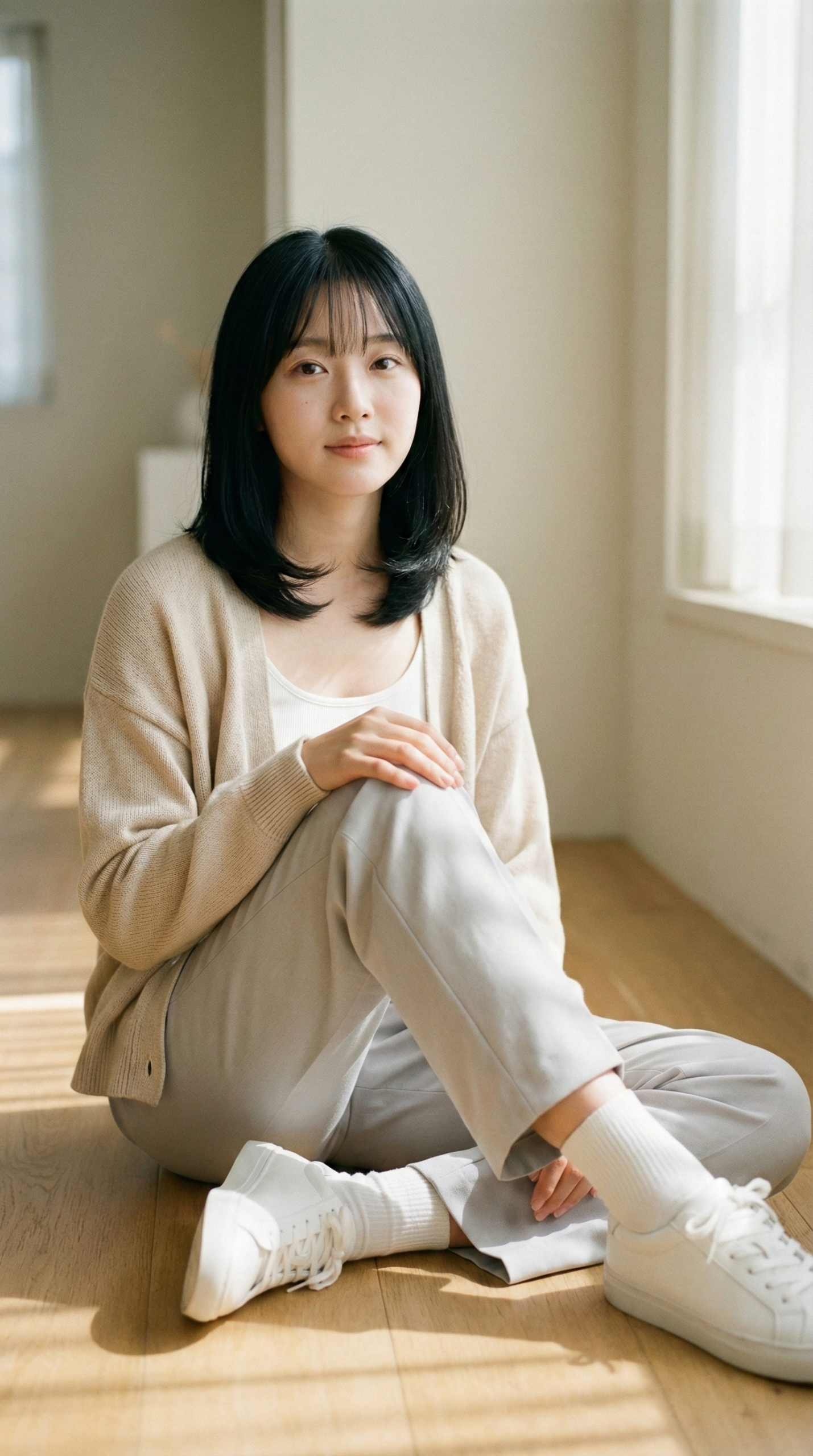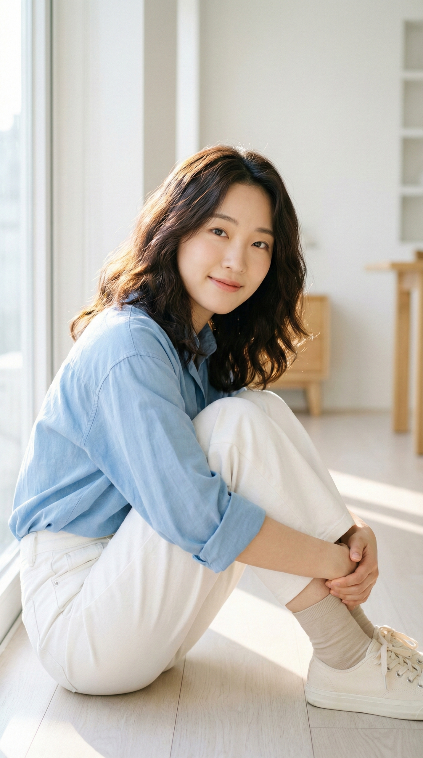 本组提示词专为打造高质量、真实感强的自然光室内人像而设计,采用16:9横版构图,强调柔和光影、极简背景与放松自然的肢体语言。内容涵盖多样发型、服装与坐姿组合,适用于生活方式摄影、杂志风人像及AI图像生成,可快速营造温暖通透、具有编辑感的视觉氛围。