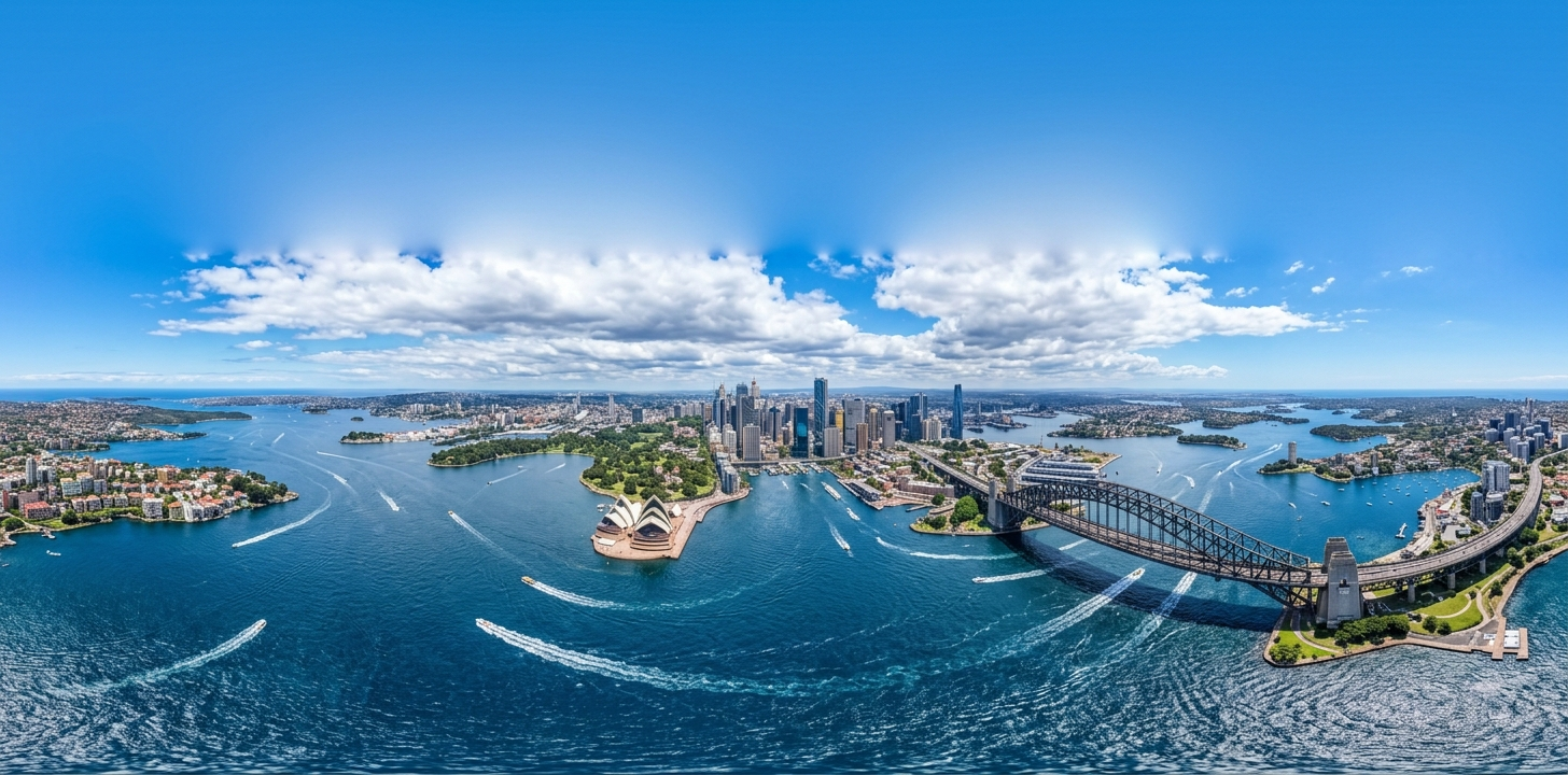 "必须保留": ["纯360度全景透视", "海港大桥与歌剧院并存", "写实摄影质感"],