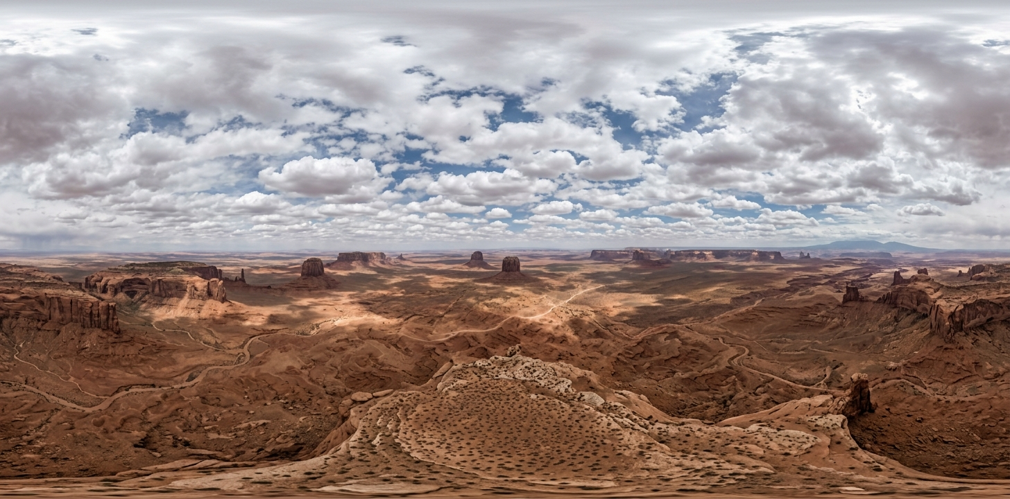 无穷尽的景深梯度:在 360 度视角中,近处地面的细小砂石与远方地平线上因大气透视而变得浅淡的山影构成了极强的视觉纵深。