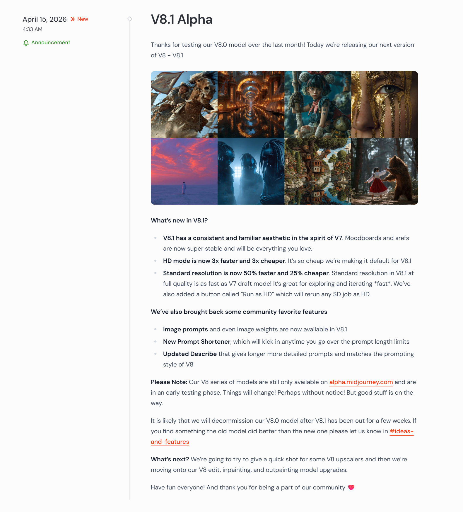 团队寄语: Midjourney 表示,此次更新通过大幅降低计算资源消耗,旨在让更多用户能以更低的门槛驾驭专业级 AI 创作。