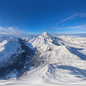 提示词简介:该提示词围绕极地雪山环境构建,强调无人机高空视角...