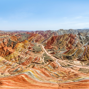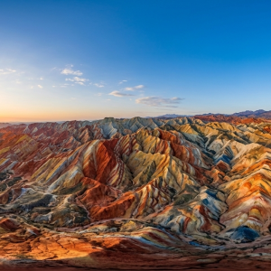 本作品以完整球形等距柱状投影呈现位于张掖七彩丹霞地质公园的壮...