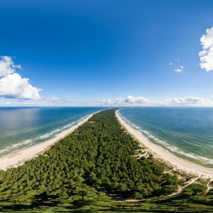 本作品以完整球形等距柱状投影呈现位于波罗的海沿岸的狭长海岸带...