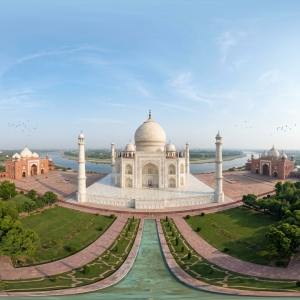 本作品以完整球形等距柱状投影呈现位于印度阿格拉的**泰姬陵*...