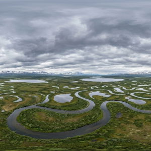 简介 本提示词还原西伯利亚极地苔原湿地的曲流河奇观,以超高空...
