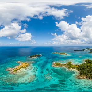 简介 本提示词还原加勒比海群岛的珊瑚礁海域奇观,以超高空无人...