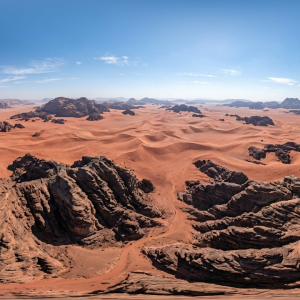 简介 本提示词还原约旦瓦迪拉姆沙漠的峡谷地貌奇观,以高空无人...