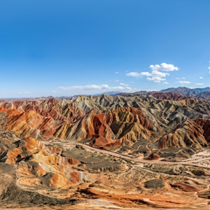 简介 本提示词精准还原中国张掖七彩丹霞的彩色丘陵地貌奇观,以...