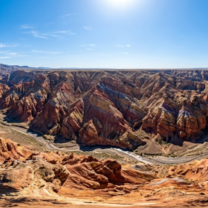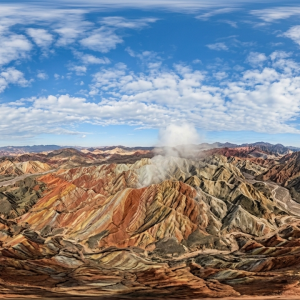 张掖七彩丹霞彩色丘陵侧光 360° 全景航拍