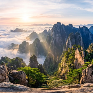简介 本提示词精准还原中国黄山核心景区的花岗岩峰林奇景,以高...