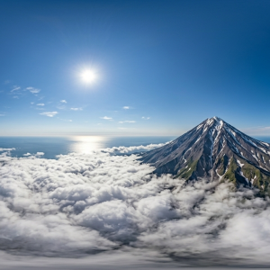 简介 本提示词还原俄罗斯堪察加半岛标志性的锥形火山云海奇观,...