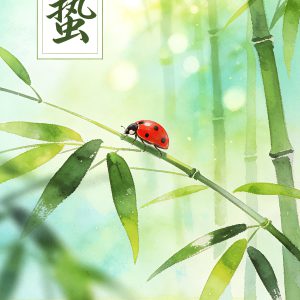 "以写意水彩笔触,描绘惊蛰时节竹林新叶、虫鸣春醒的景致,诠释...