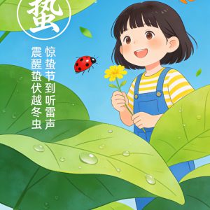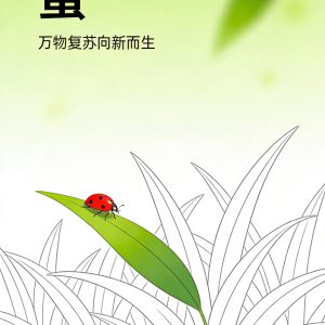 "以极简线描手法,描绘惊蛰时节柳叶新绽、虫鸣春醒的景致,诠释...