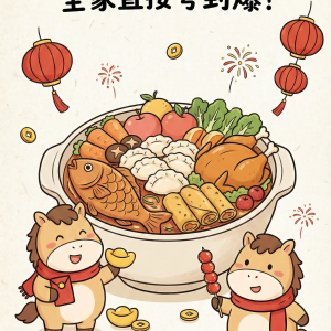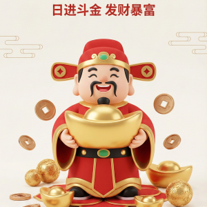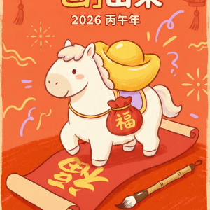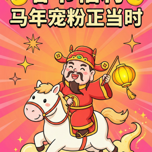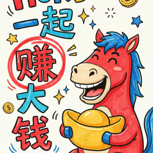 马年新春手绘趣味发财海报